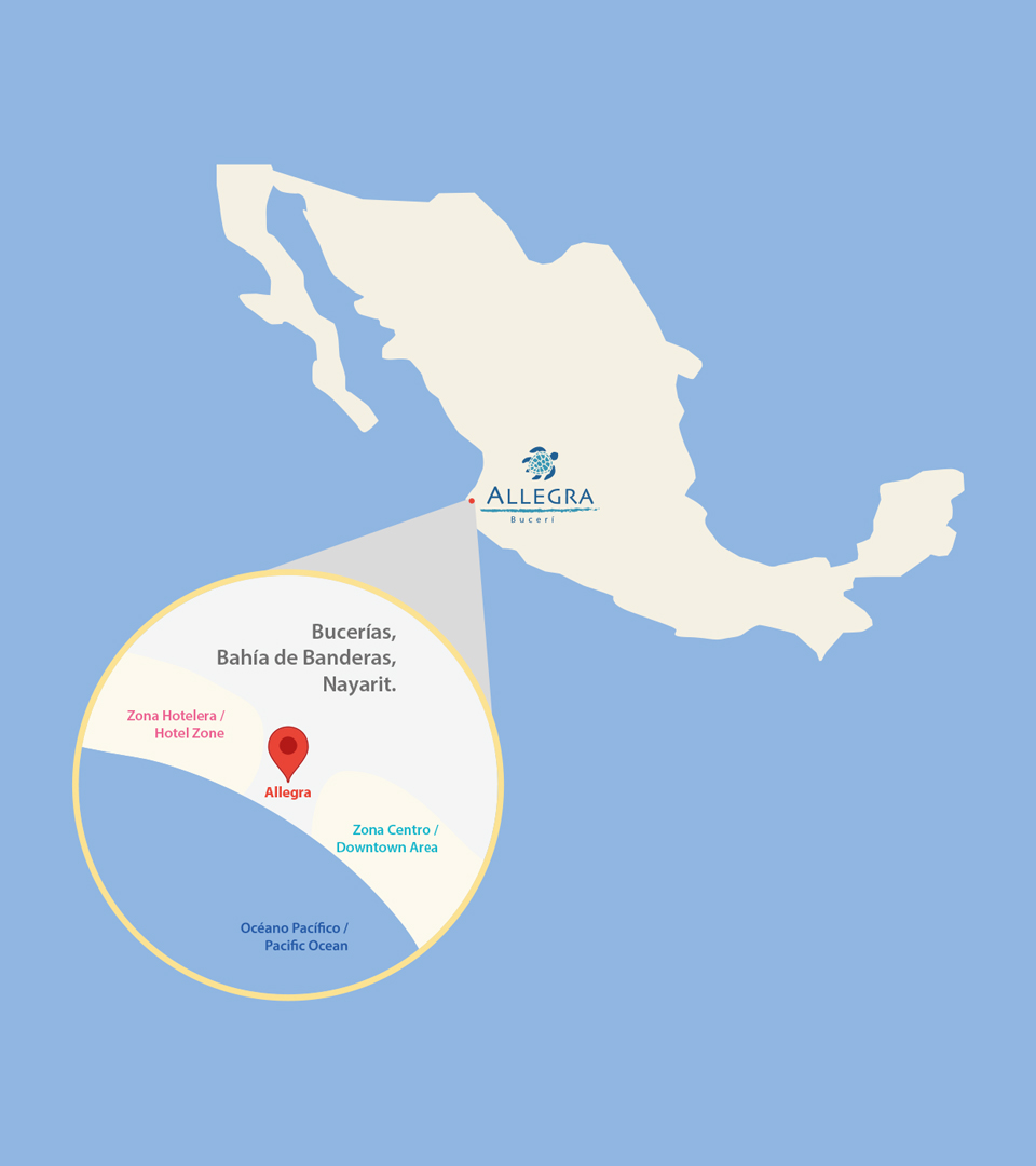 Ubicado en una zona muy tranquila a solo 150 metros del hermoso pueblo de Bucerías.